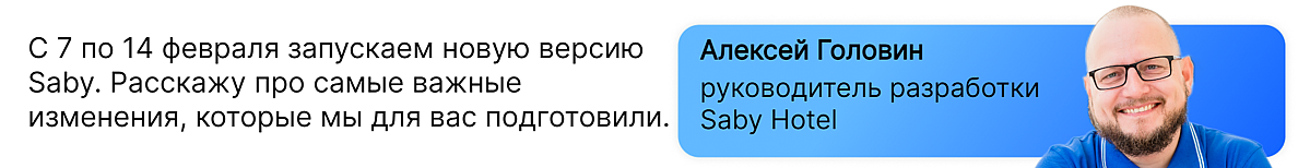 Поддержали автоматические уведомления для гостей отеля. Теперь Saby сам отправляет подтверждения брони, сообщает об изменениях и напоминает о заезде. Все настройки — в специальном разделе, меньше ручной работы — больше оперативности и контроля.