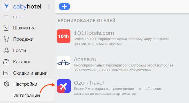 Добавили интеграцию с Ozon Travel. Размещайте номера на популярном онлайн-сервисе и привлекайте еще больше гостей.