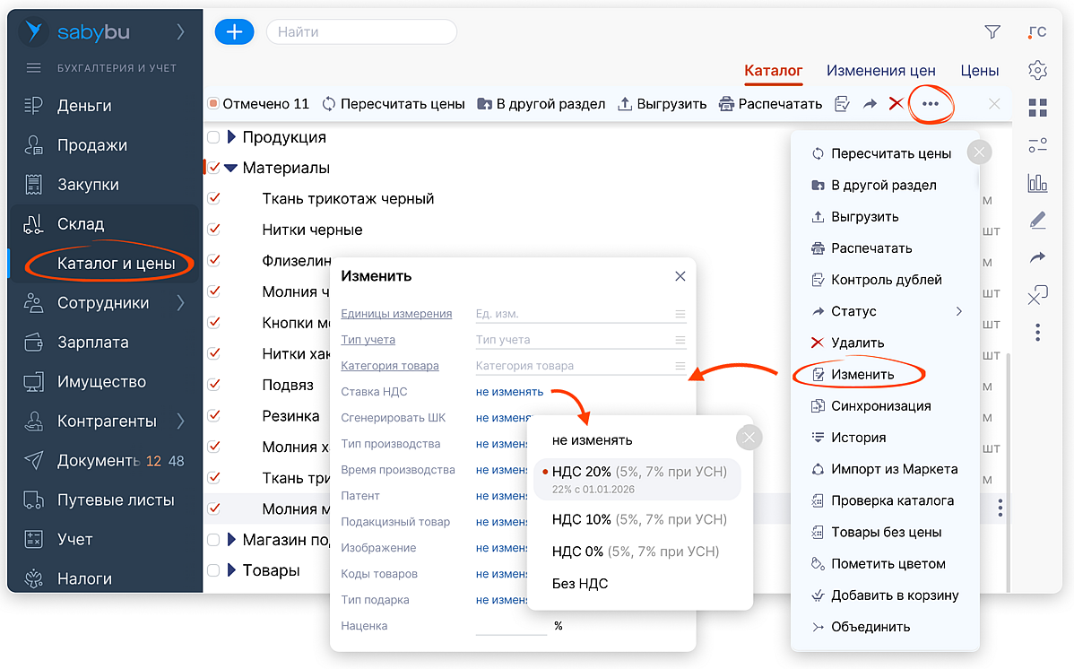 Независимо от того, какую ставку по НДС вы выбрали, в каталоге проставьте:
