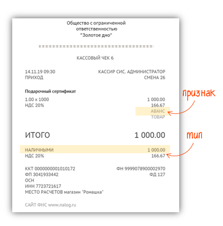 2 чек — когда покупатель придет воспользоваться сертификатом. Реквизиты чека зависят от способа оплаты: 1. товар или услуга полностью оплачены номиналом сертификата