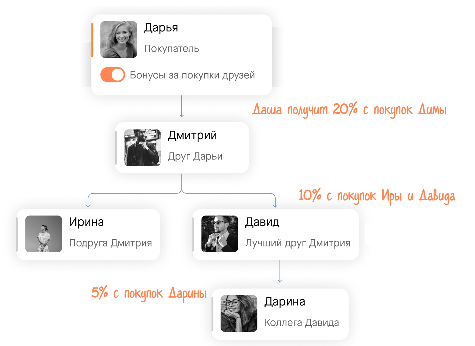 Клиенты сами приведут новых клиентов. Они прорекламируют ваше заведение в обмен на бонусы за покупки друзей.
