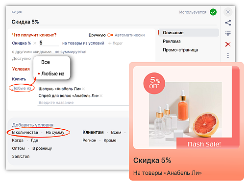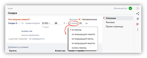 Больше условий в скидках