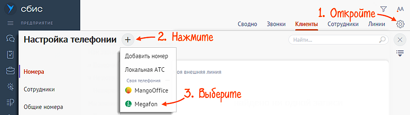 В СБИС можно фиксировать и обрабатывать звонки даже через сторонние телефонии. Мы добавили возможность интеграции с Мегафоном и Mango Telecom.