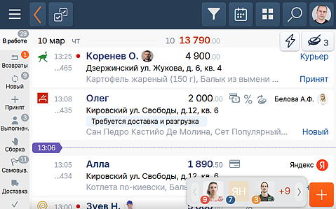 Отдельный раздел «Доставка» — уже на терминале. Заказы из онлайна автоматически появляются в офлайне и наоборот.