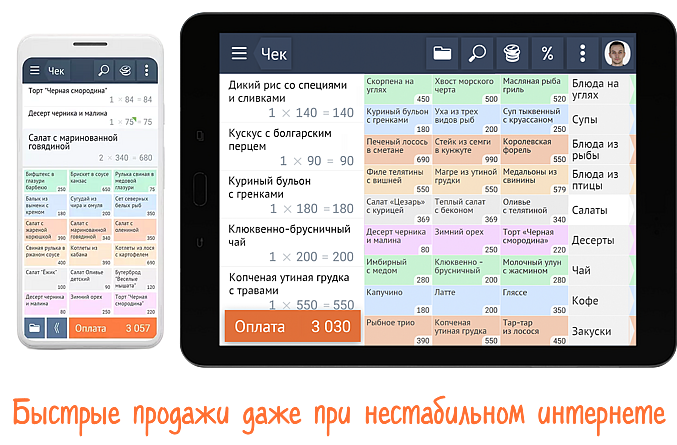 Продавайте даже без интернета. Данные из приложения и онлайн-кабинета синхронизируются, когда соединение возобновляется.
