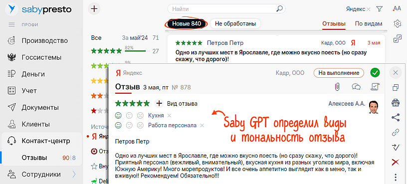 Как настраивать виды отзывов — читайте в базе знаний. В ролике показали, как устроена вся работа с отзывами в Saby: