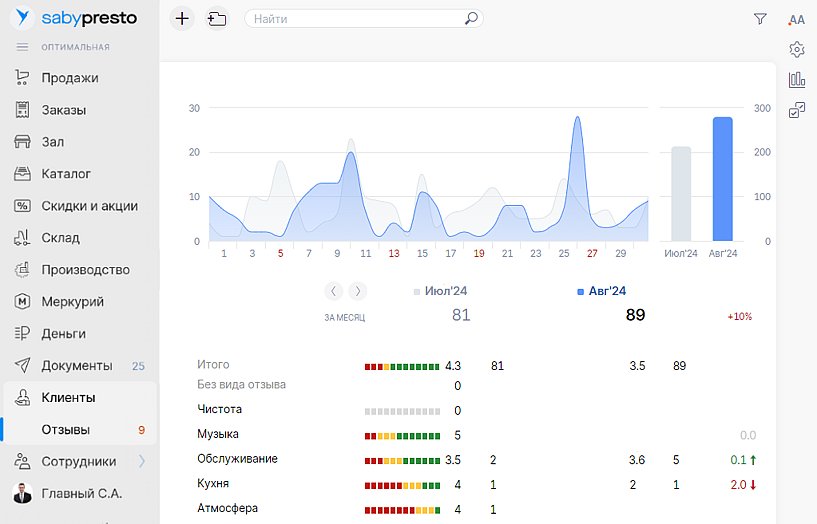 C Saby вы точно знаете, какие ваши сильные и слабые стороны отмечают клиенты в отзывах. Вы получите готовую статистику, и для нее не нужно заниматься ручной обработкой — за вас это сделает нейросеть.
