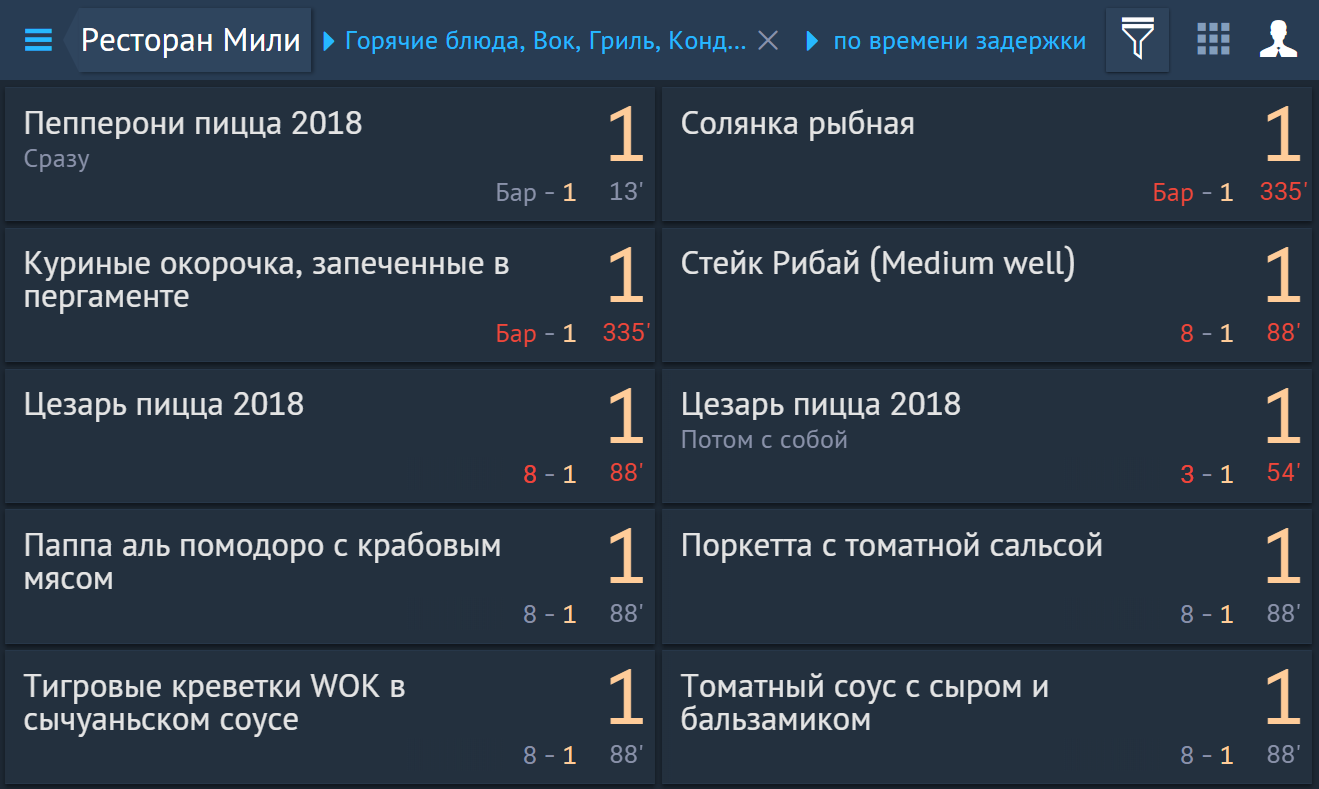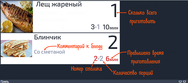 В результате, вместо того, чтобы работать с гостями в зале, официант должен периодически забегать на кухню, чтобы узнать статус готовности блюда, поторопить повара или попросить заранее приготовить продукты для блюдо, которое скоро потребуется готовить, например, разморозить стейк.