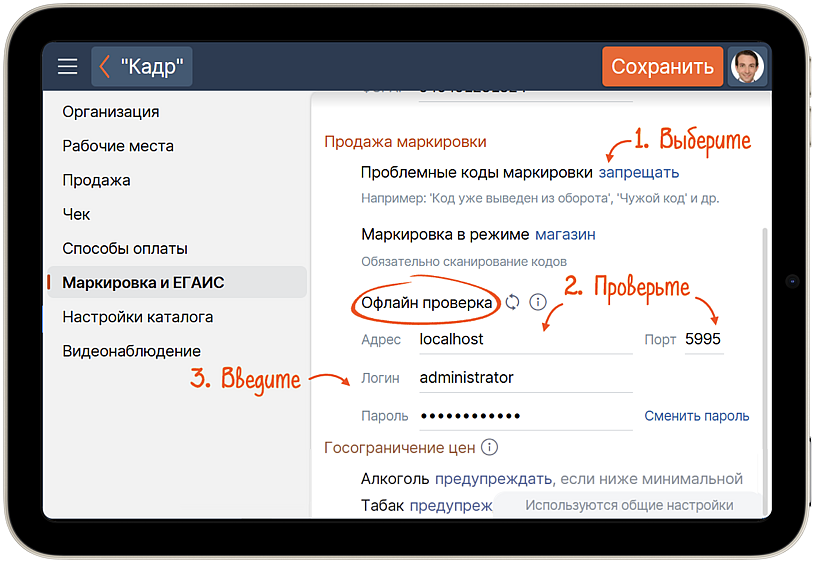 B Saby все готово к изменениям: вам не придется вручную отправлять коды на офлайн-проверку. Если интернет пропадет и онлайн‑проверка будет недоступна, Saby автоматически сверит коды с последней версией локальной базы и предотвратит продажу товара с проблемной маркировкой.