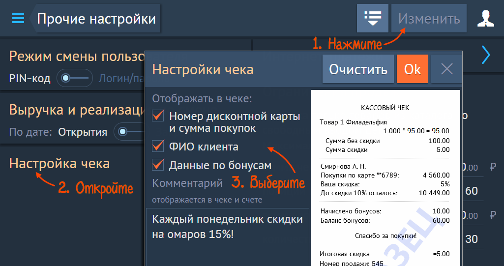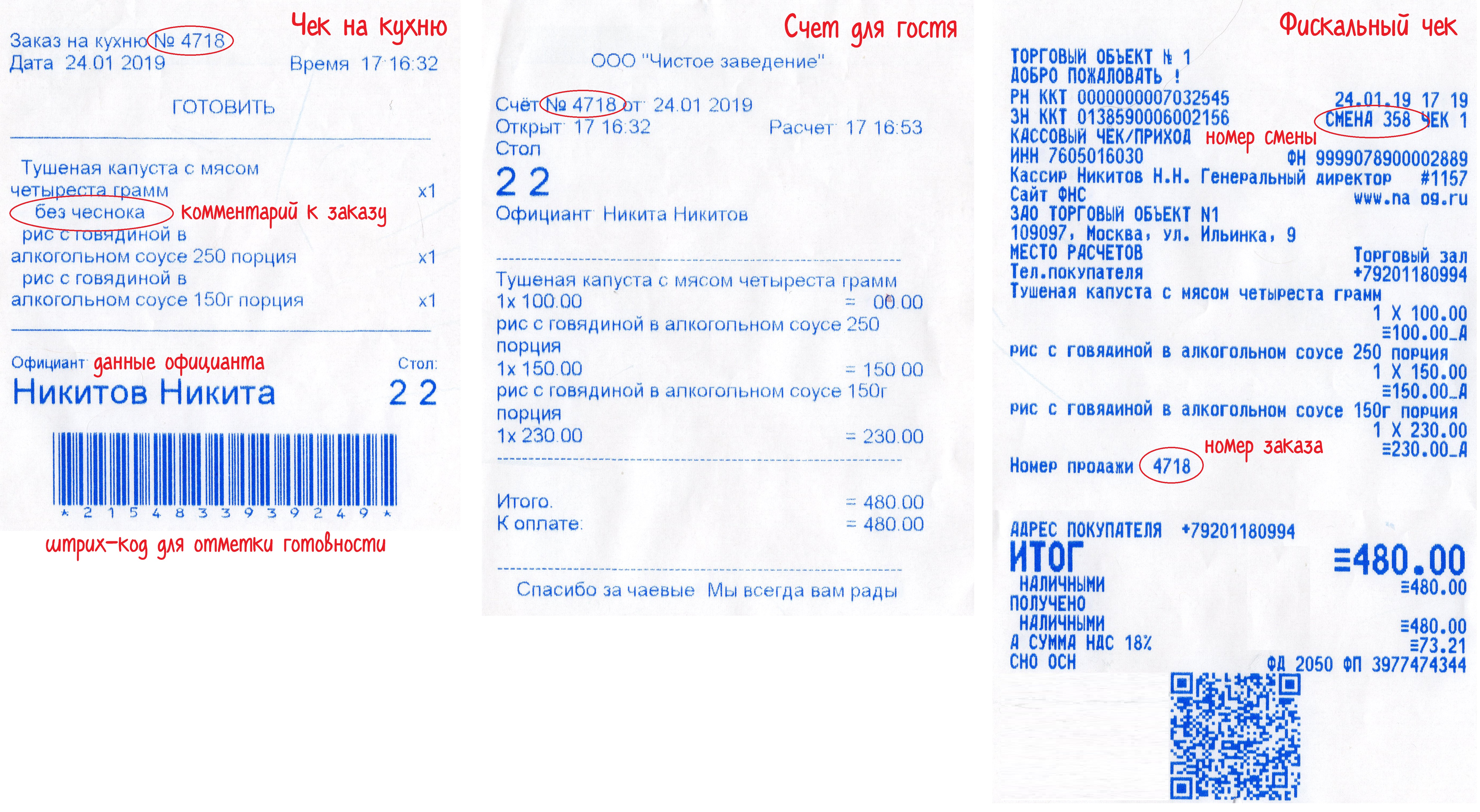 Официант формирует заказ, в том числе с указанием курса подачи блюда и коментарием к блюду, например, «не перчить», и отправляет его на кухню и - ву-аля!