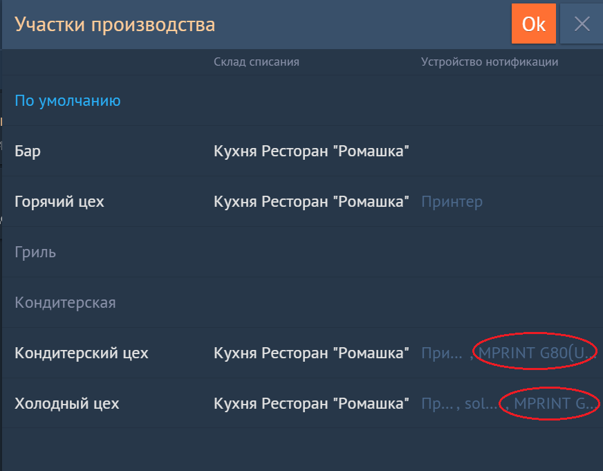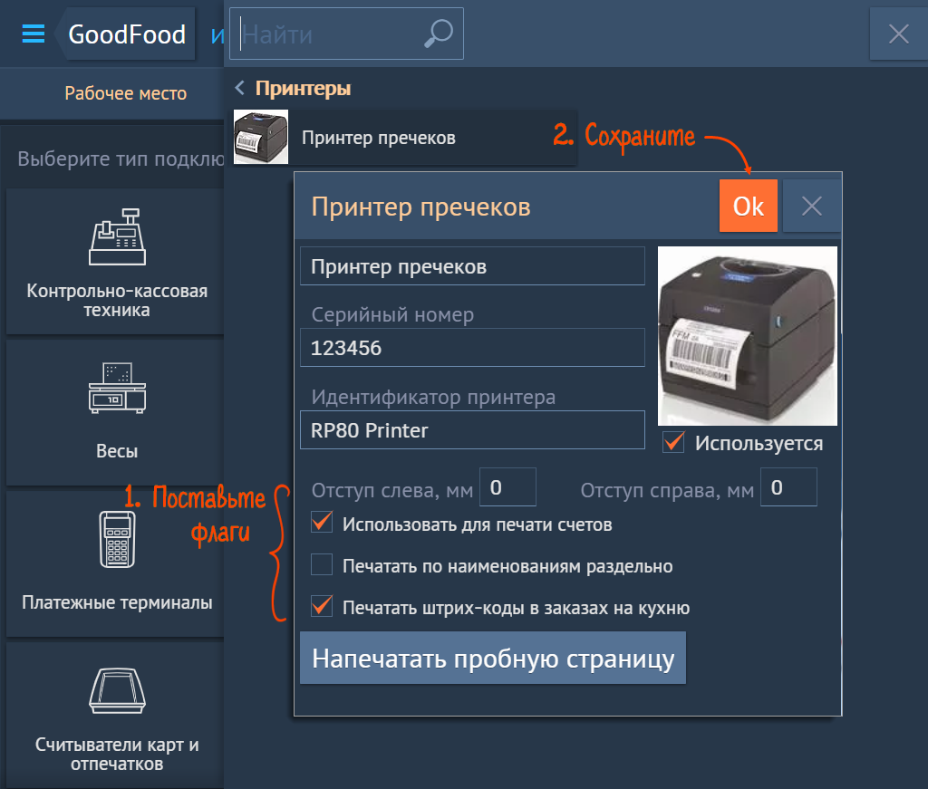 На принтере печатается чек с блюдом, которое готовится именно на этом участке производства, например, в горячем цехе (не забудьте правильно настроить участок производства и принтер). Это важно, так