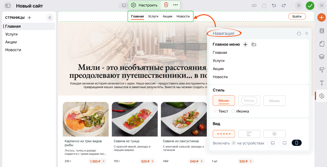 Виджет «Навигация» сам соберет удобное меню, чтобы клиент не блуждал, а сразу находил нужное.