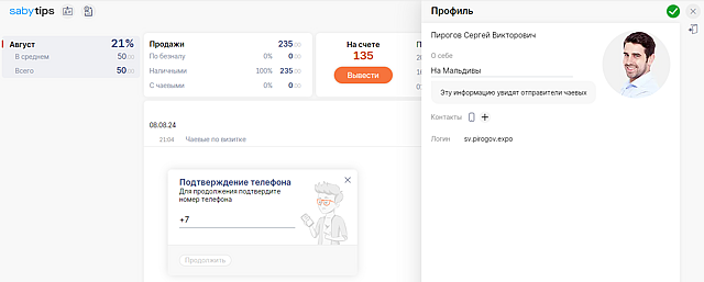 Мы улучшили защиту чаевых. Теперь для их вывода обязательно требуется подтвердить номер телефона в профиле сотрудника.