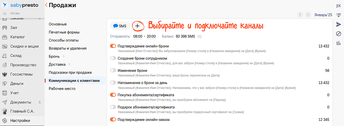 Отправляйте уведомления в WhatsApp* и Telegram — быстрее, дешевле и эффективнее. Мессенджеры читают охотнее — напоминайте о бронировании, подтверждайте заказы и будьте на связи там, где гость точно есть.