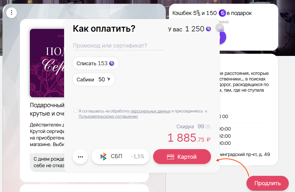 Лояльные гости будут возвращаться чаще — продлевайте сертификаты и абонементы в один клик. Администратор сможет сделать это в карточке, открыв раздел «Сертификаты», а покупатель — самостоятельно в приложении Saby Get.
