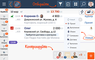 Назначайте курьера, добавляйте комментарии, печатайте листы доставки и принимайте оплату там, где удобно. Используйте все возможности для четкой работы и увеличивайте поток заказов — теперь и во фронте.