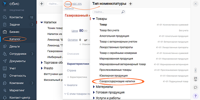 С 1 июля сахаросодержащие напитки по закону станут подакцизными. Платить акцизы будут производители такой продукции. Однако изменения коснутся всех розничных продавцов лимонадов и сладких газировок. Мы уже обновили СБИС, чтобы вы могли подготовиться к нововведениям заранее. 1. Смените тип номенклатуры подакцизных лимонадов на «Сахаросодержащие напитки» по инструкции.