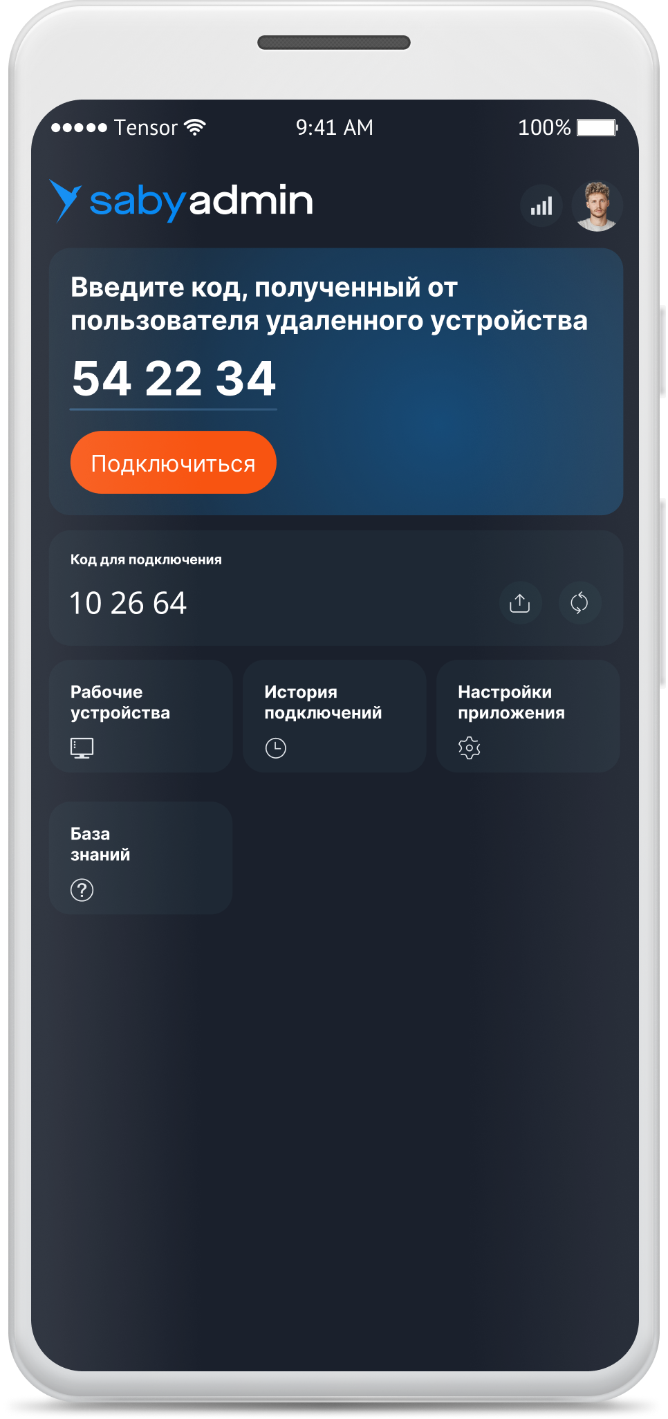Saby Admin помогает дистанционно подключиться к онлайн-кассе, компьютеру или смартфону. Теперь получить удаленный доступ к другим устройствам можно за пару минут прямо со смартфона — с мобильным приложением на Android. Быстро подключаться по коду доступа или в один клик из списка сохраненных устройств.