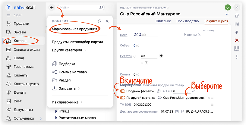 Теперь вы быстрее настроите карточки для продаж, проконтролируете остатки, а Saby не будет требовать коды маркировки на кассе.
