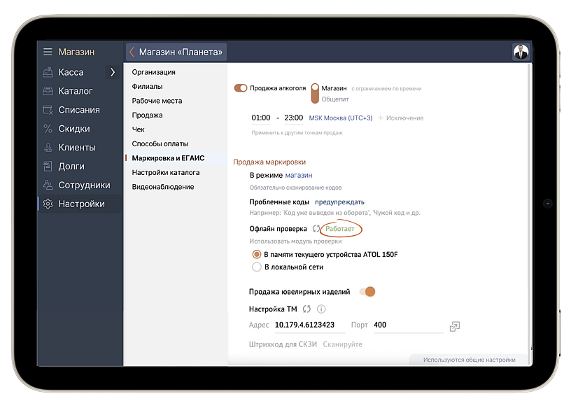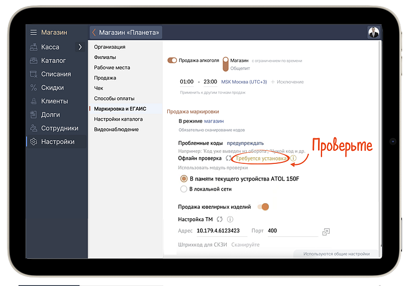 Подробности о настройке офлайн-проверки маркированных товаров на кассе читайте в базе знаний.