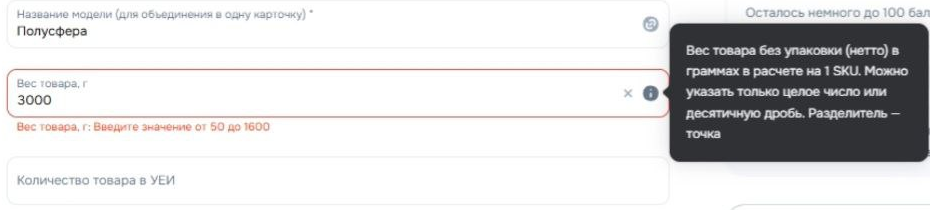 На практике селлеры столкнулись с тем, что реальные параметры товаров не вписываются в установленные маркетплейс лимиты. Например, фактический вес рыболовной мормышки — 0,6 г, а система требует указать значение не менее 5 г. Единственный вариант сохранить в карточках «нестандартные» атрибуты — обратиться в техподдержку.