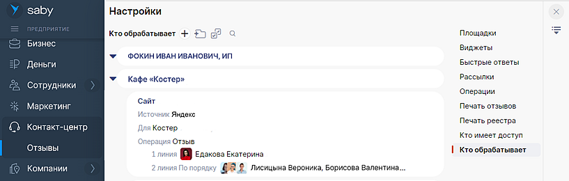 СБИС — это не только удобный агрегатор отзывов, но и помощник в их обработке. Система за вас распределит задачи в зависимости от загруженности сотрудников и условий. Просто добавьте правила: вся настройка — в разделе «Кто обрабатывает». Укажите операторов или добавьте линии — только ответственные смогут отвечать клиентам. При поступлении новых отзывов СБИС сформирует задачи, пришлет уведомление и отправит на выполнение более свободным специалистам.