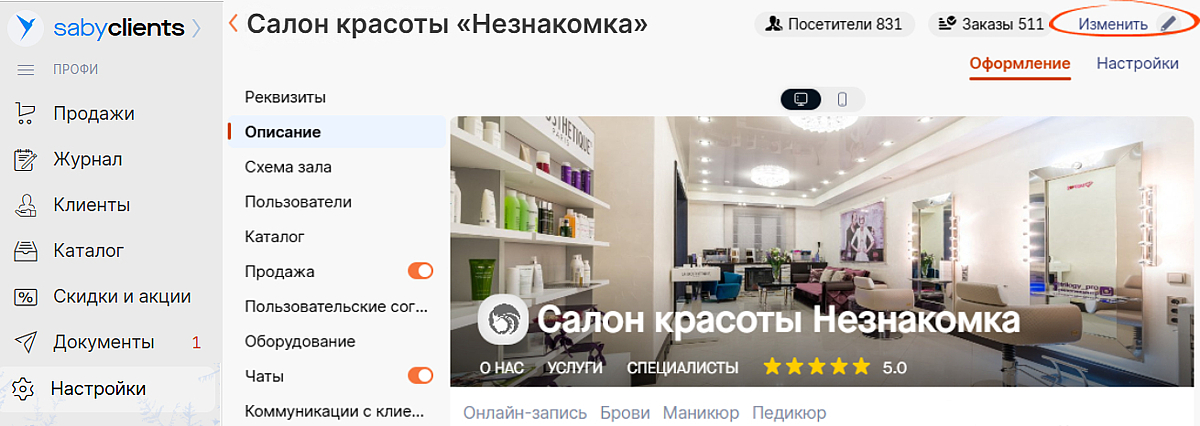 Откройте вкладку «Описание» в настройках точки продаж и оформляйте карточку под свои задачи.