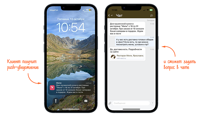 Клиент сможет задать любой вопрос по рекламной рассылке в чате и быстрее принять решение о покупке.
