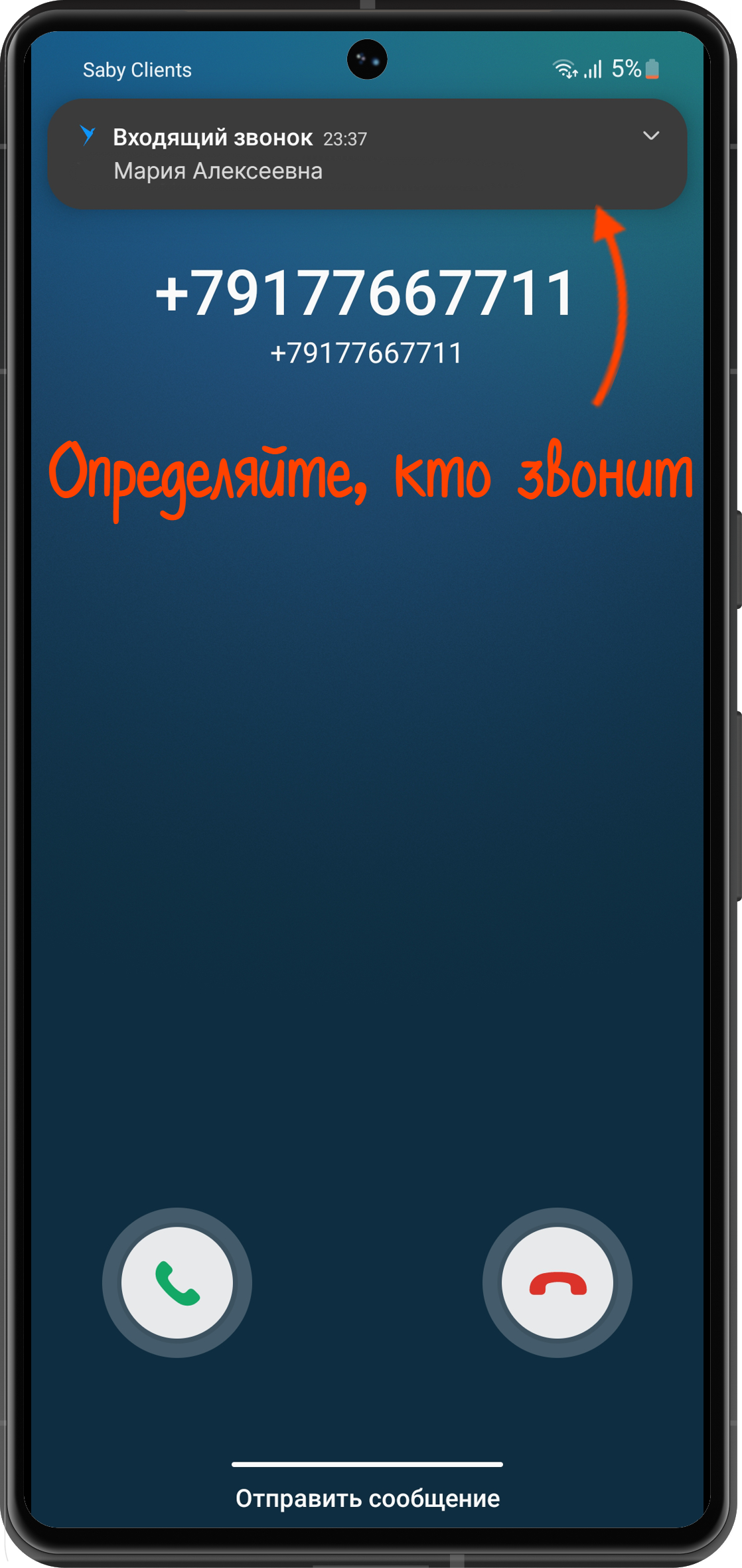 Звонит клиент? Saby подскажет, кто на линии — вы получите push-уведомление, сможете обратиться по имени и сразу перейти к делу.