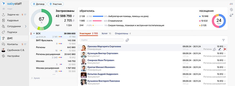 Отслеживайте популярность программ добровольного медицинского страхования и подключайте сотрудников еще быстрее. Saby помогает сократить расходы, экономит время и делает ДМС удобнее для всех.