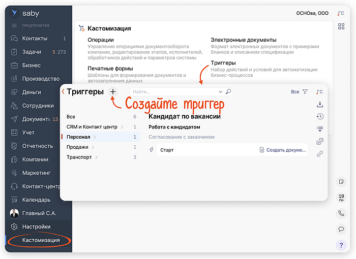 Добавьте в документ «Переработка» поле с датой отгула — сотрудник сам укажет, когда планирует взять день отдыха. Настройте триггер на событие — и Saby создаст документ «Отгул».