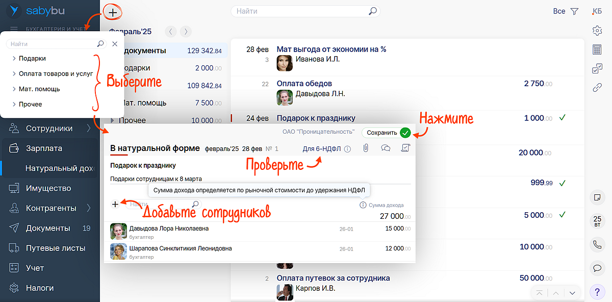 Мы упростили вашу работу с неденежными вознаграждениями и добавили новый раздел «Натуральный доход».