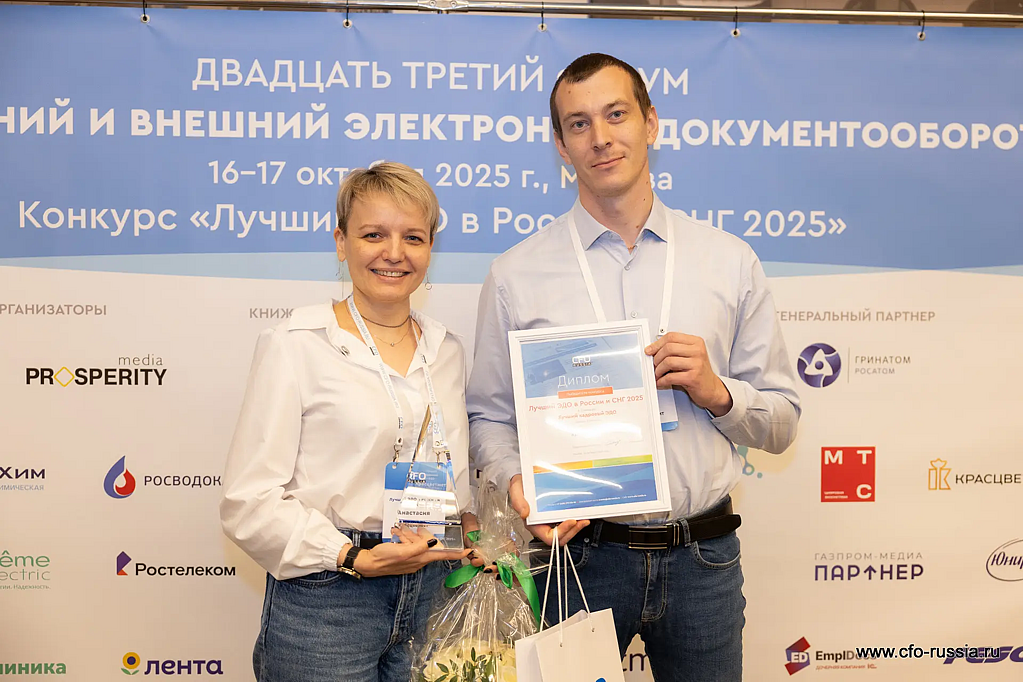 Конкурс «Лучший ЭДО в России и СНГ 2025» от CFO-Russia— площадка для демонстрации успешных проектов в сфере электронного документооборота. В этом году финалистами стали десятки российских и международных компаний, которые экспертное жюри оценивало по критериям эффективности, инновационности, масштабируемости и влияния на развитие ЭДО. Saby в очередной раз подтвердил эффективность своих цифровых HR-решений: проект перехода «Красцветмета» на кадровый ЭДО принес компании победу в номинации «Лучший кадровый ЭДО».