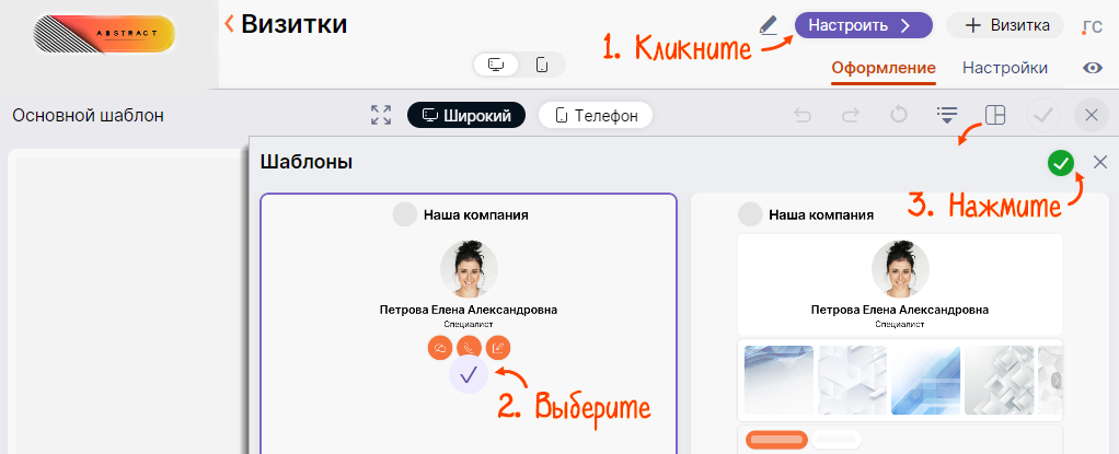 Настройте визитку, отправьте ее клиентам, и они не потеряют информацию о вас.