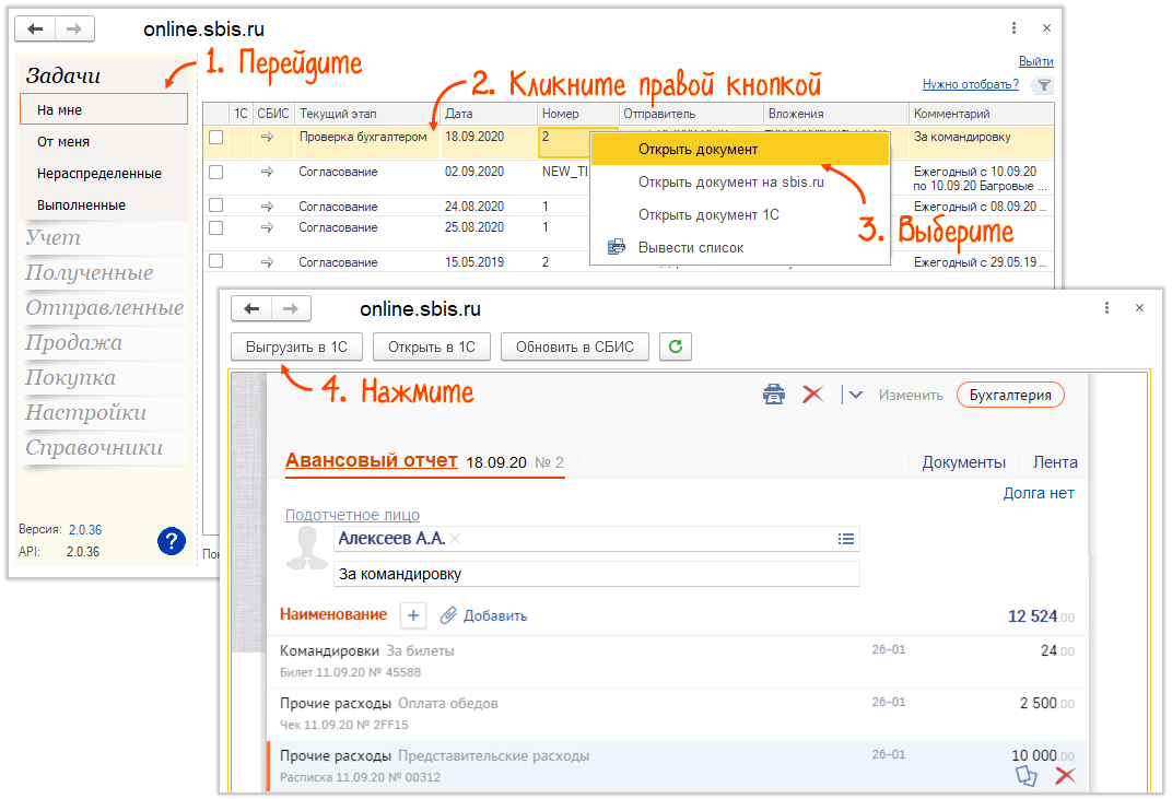 Подробнее о том, как загрузить авансовый отчет из СБИС в 1С, читайте в инструкции.