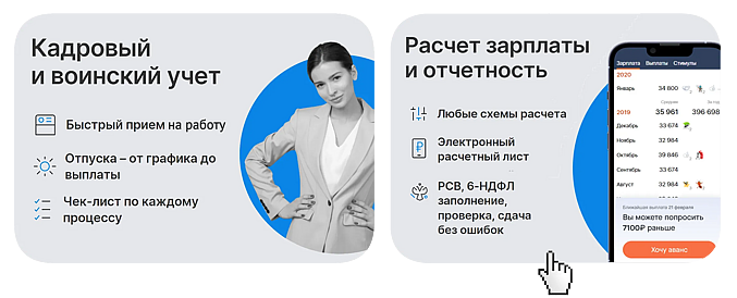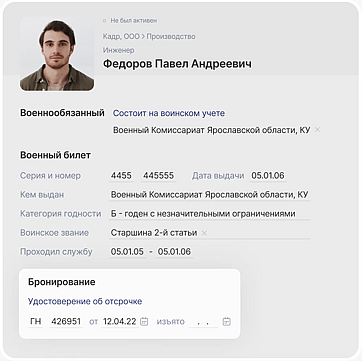 Переводя воинский учет в Saby, вы также будете вести кадровый и зарплатный учет.