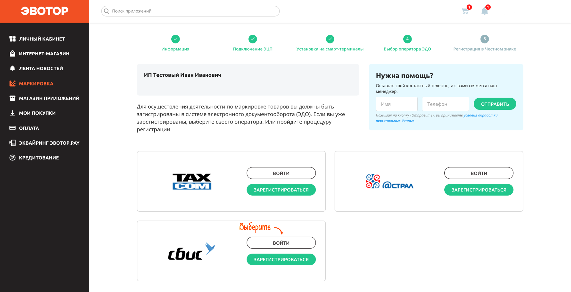 Пройдите регистрацию. При выборе оператора электронного документооборота укажите, что хотите работать в СБИС.