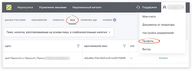 Документы отгрузки будут связаны с идентификатором ФСРАР (для юрлиц это КПП, для ИП — ФИАС ID). Вы не сможете отправить пиво, если торговая точка получателя не зарегистрирована в ЕГАИС, а МОД не добавлен в личный кабинет «Честного знака». Чтобы ФИАС ID в УПД заполнился правильно, в карточке клиента укажите точный адрес покупателя. Он должен совпадать с адресом, указанным в ФИАС. У покупателя-ИП вместо адреса можно просто вписать ФИАС ID. Поставщики не смогут отправить вам продукцию, если ваш магазин не зарегистрирован в ЕГАИС по месту осуществления деятельности. Убедитесь, что добавили все свои МОД в личном кабинете «Честного знака».