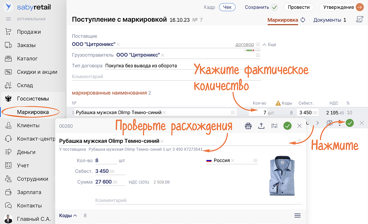 Когда фактическая поставка товаров с маркировкой или ВСД не совпадает с накладной, приходится терять время: либо возвращать всю поставку, либо ждать исправления от поставщика, чтобы завершить процесс приемки.