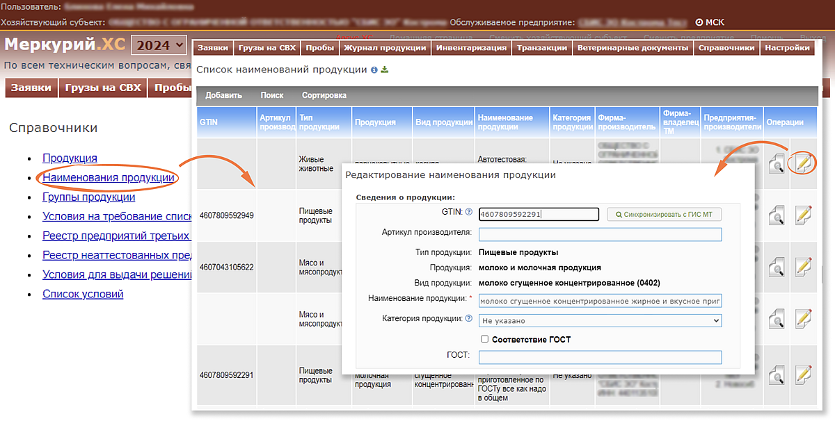 Перейдите в раздел «Справочники» затем выберите «Наименования продукции».