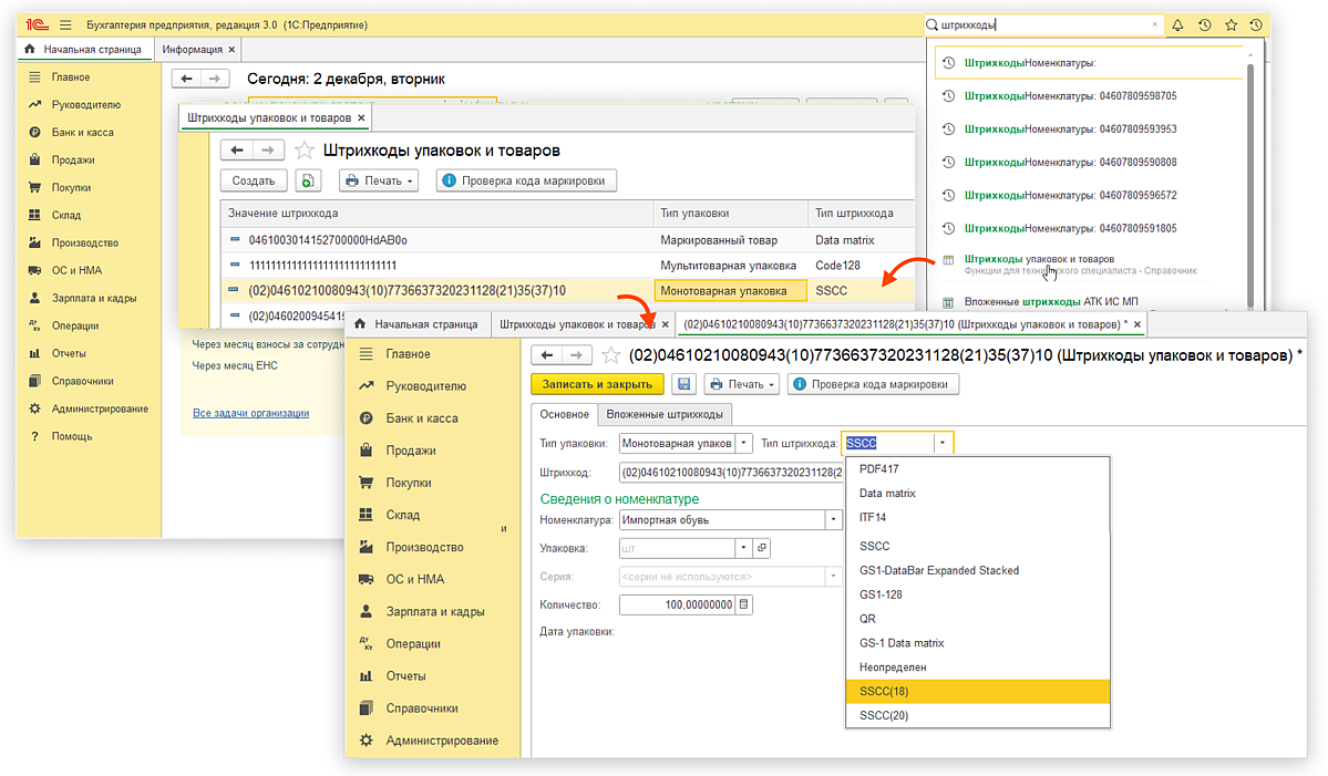 С декабря 2025 года меняется обязательный формат кода SSCC для транспортных упаковок. Это требование Центра развития перспективных технологий (ЦРПТ). Теперь код должен содержать 20 символов и начинаться с идентификатора применения AI (00). Актуальный перечень поддерживаемых конфигураций и версий 1С опубликован на сайте компании. Внешняя обработка для 1С обновлена и поддерживает новый формат кодов агрегированных упаковок в «Честном знаке» в соответствии с требованиями ЦРПТ.
