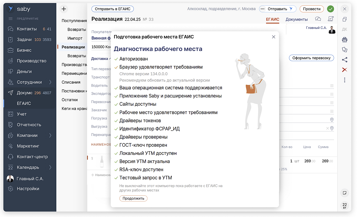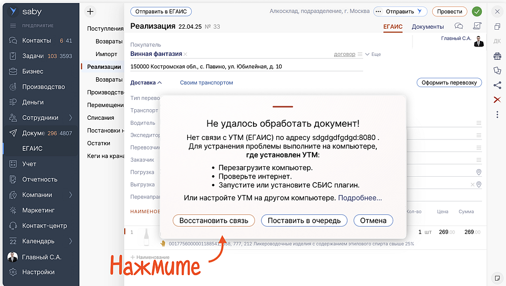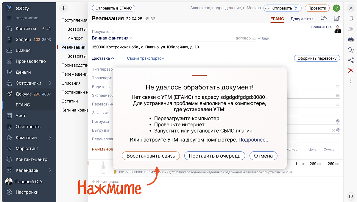 Перестал работать УТМ? Ошибка при отправке документа в ЕГАИС? Не тратьте время на поиск решений — воспользуйтесь мастером настройки в Saby.