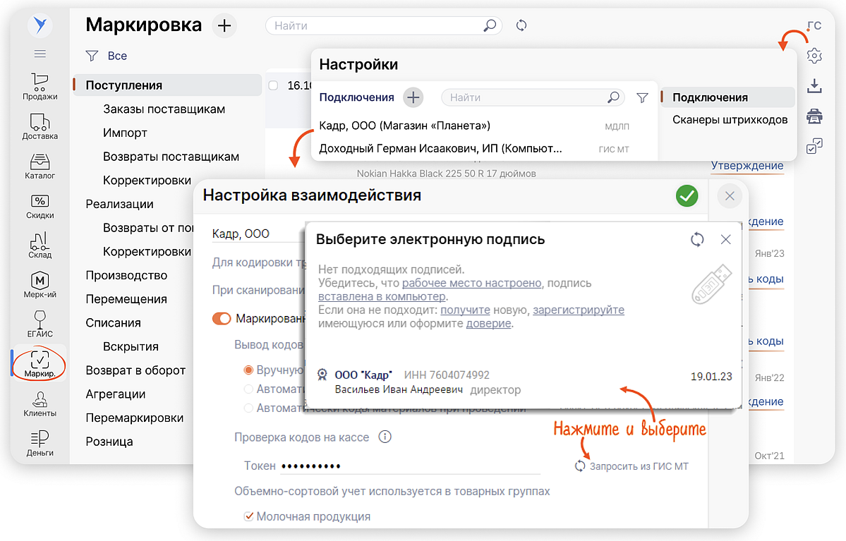 Пошаговая настройка взаимодействия Saby и ГИС МТ — в инструкции. Saby поможет проверить код маркировки при поступлении товара и убедиться, что с последующей продажей не будет трудностей.