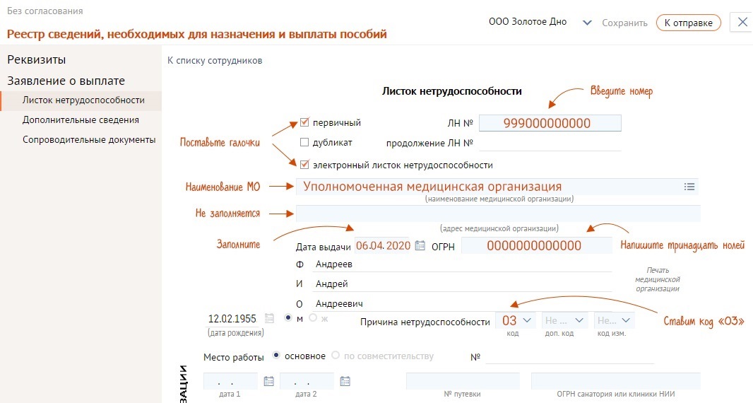 Шаг 2. Отправьте в ФСС реестр сведений по всем сотрудникам 65+