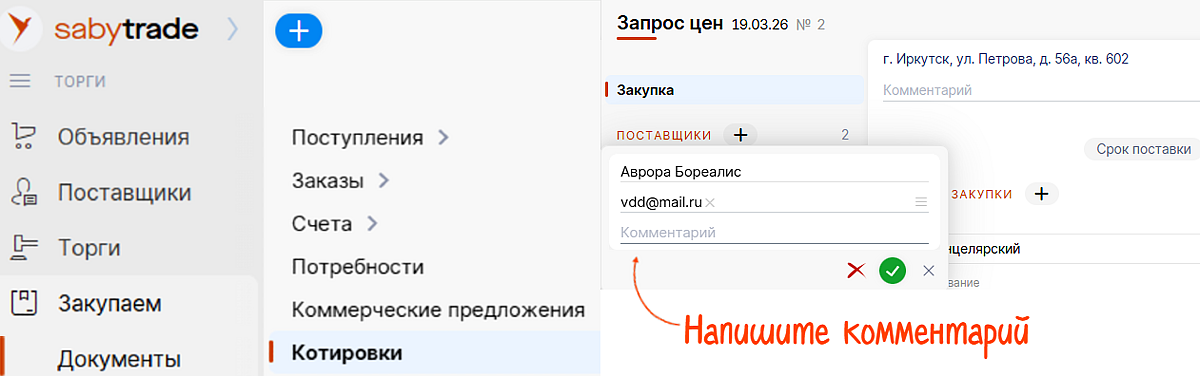 Заметку можно добавить к карточке или ценовому предложению — в разделе с контактными данными или на вкладке поставщика.