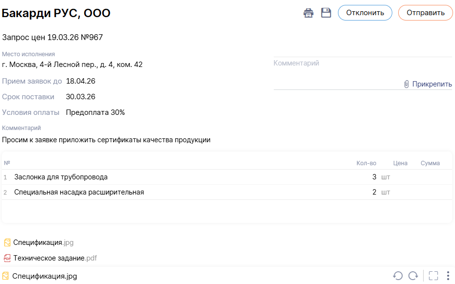 Привели форму для ответов без авторизации к общему стилю с другими документами. Теперь счета, транспортные накладные и запросы цен выглядят одинаково — поставщики не запутаются при заполнении. Коммерческое предложение придет быстрее.