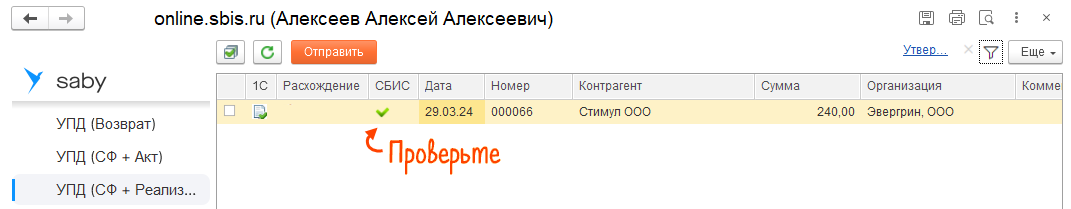 Быстрая отправка документов из 1С в ЕИС через интеграцию Saby