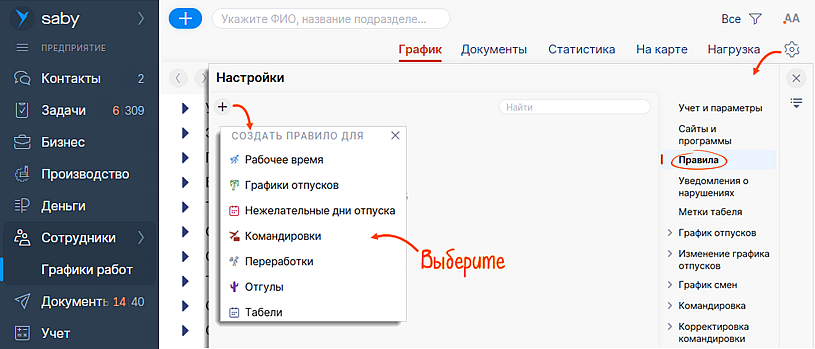 Чтобы сотрудник не просил отгул в горячий сезон или командировку с космическим бюджетом, задайте условия для оформления документов рабочего времени в Saby. Так никому не придется тратить время на заведомо обреченные заявки и исправление ошибок.