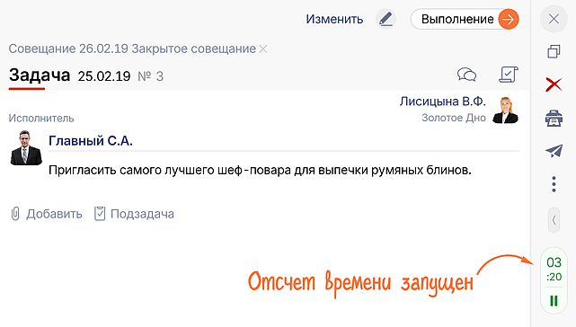 Если в течение дня работаете с потоком задач, таймер поможет фиксировать время по каждому документу в режиме реального времени. После активации таймер будет доступен из любого раздела кабинета. По кнопке легко поставить работу на паузу или завершить ее полностью. Календарь заполнится автоматически.