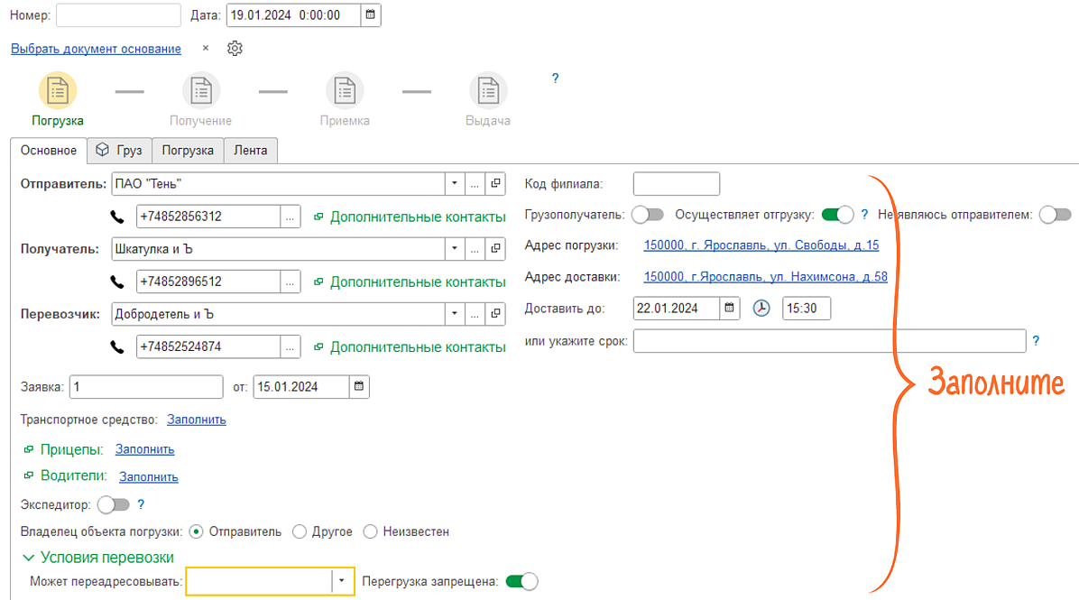 Оформлять ЭТрН — легко и быстро за счет автозаполнения.